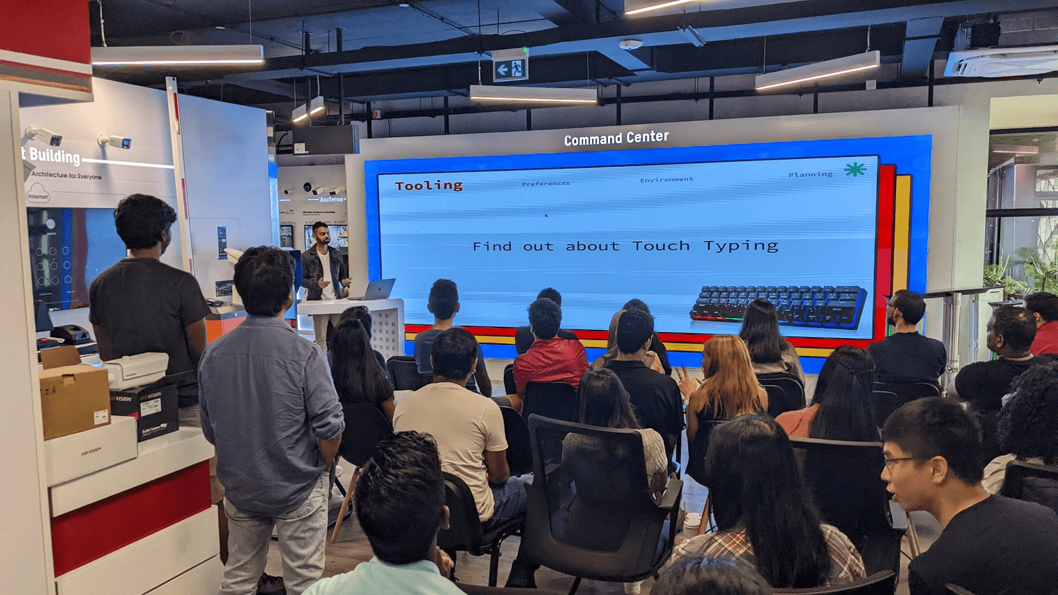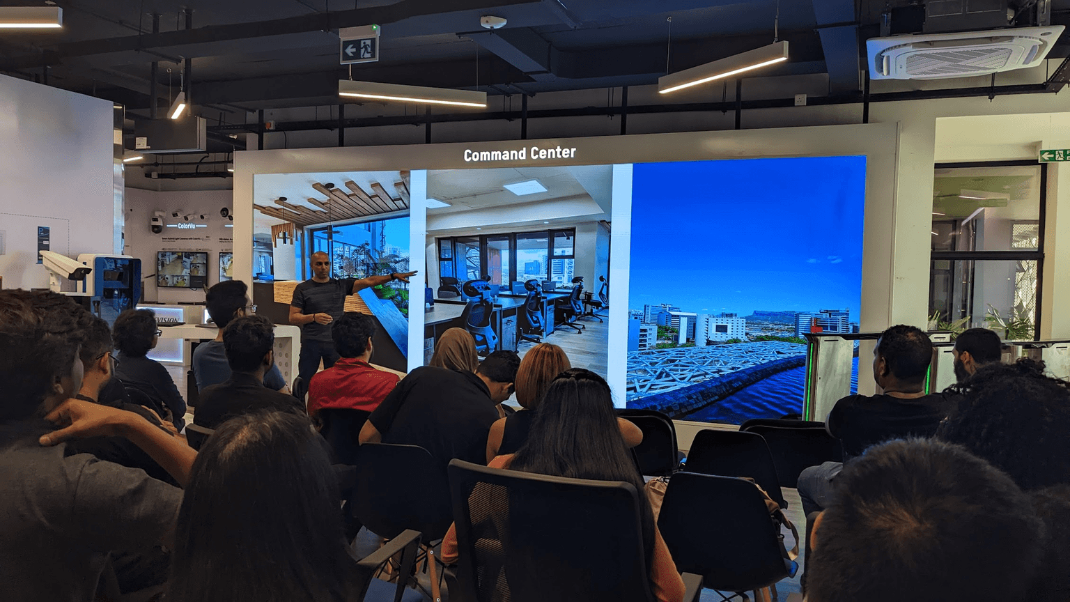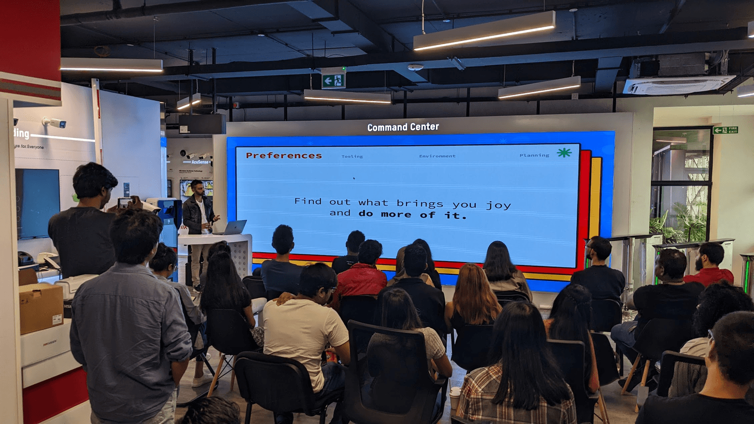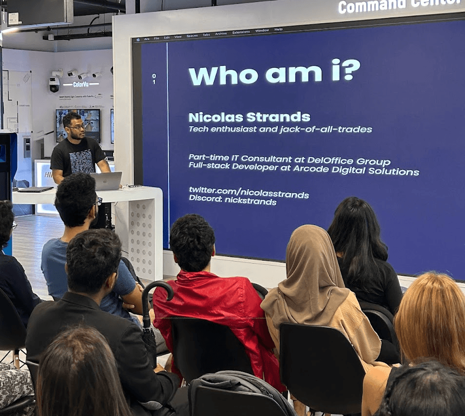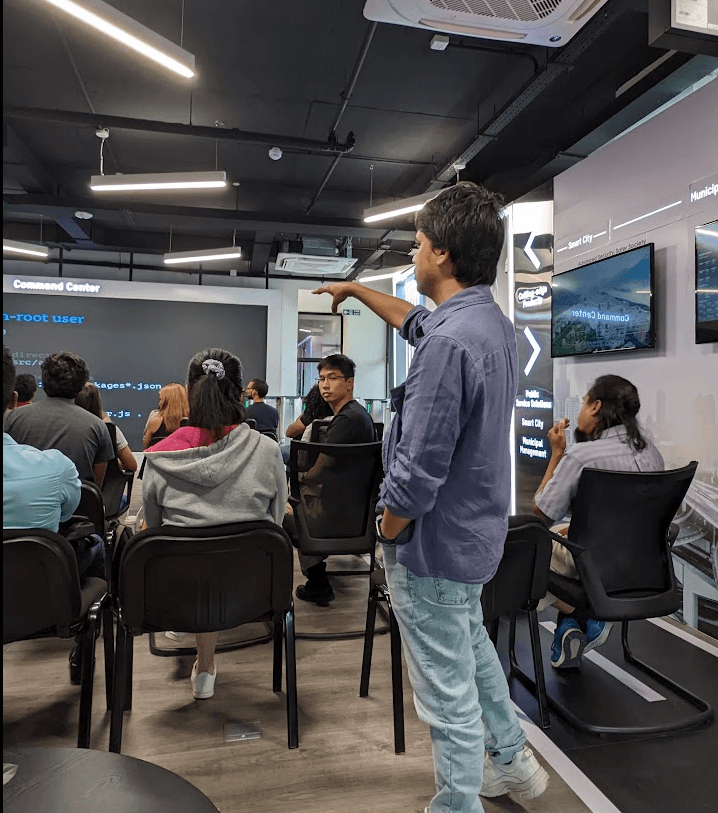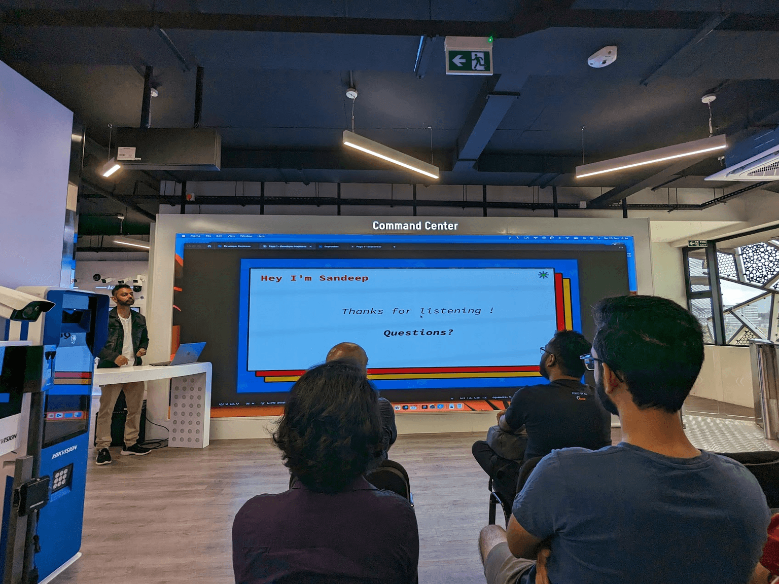 For this meetup we had an awesome helping hand from Terence & Mahima who helped get us in touch with the location by setting up the meetings. Kushul & I visited the location two weeks prior and was blown away by the cool tech on display there and the gigantic screen we would get to use.