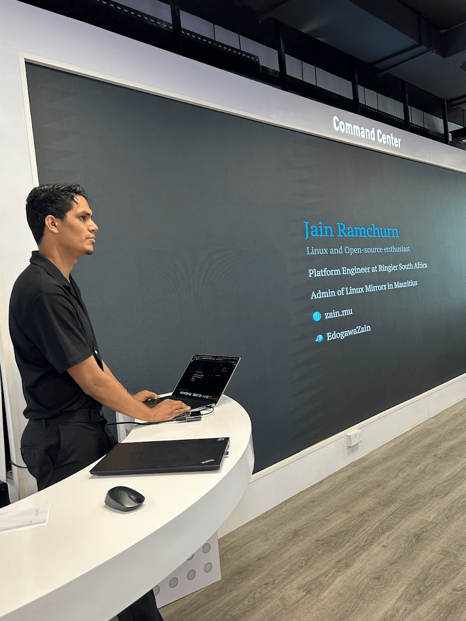 Jain is a very talentend platform engineer who's also the admin of the Local Linux Mirrors in Mauritius. In his presentation today he showed ways to improve a docker file to take advantages of various features of how containerization works in order to have a more efficient docker configuration. I was really impressed and learned a lot during this talk.